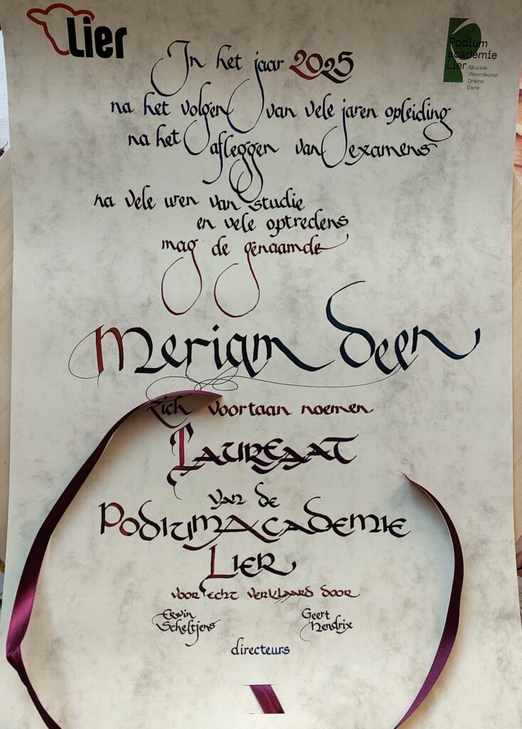 Onze vertelster Meriam Deen heeft niet alleen de Podiumacademie in het Belgische Lier afgerond, ze heeft dit met haar verhaal ‘Visserman’ ook nog eens zo goed gedaan dat ze zich in het vervolg Laureaat mag noemen. Wij zijn trots op haar!